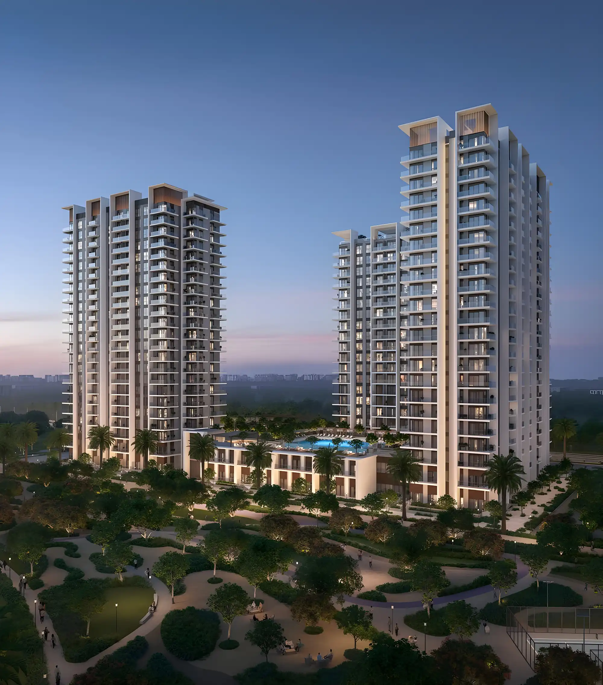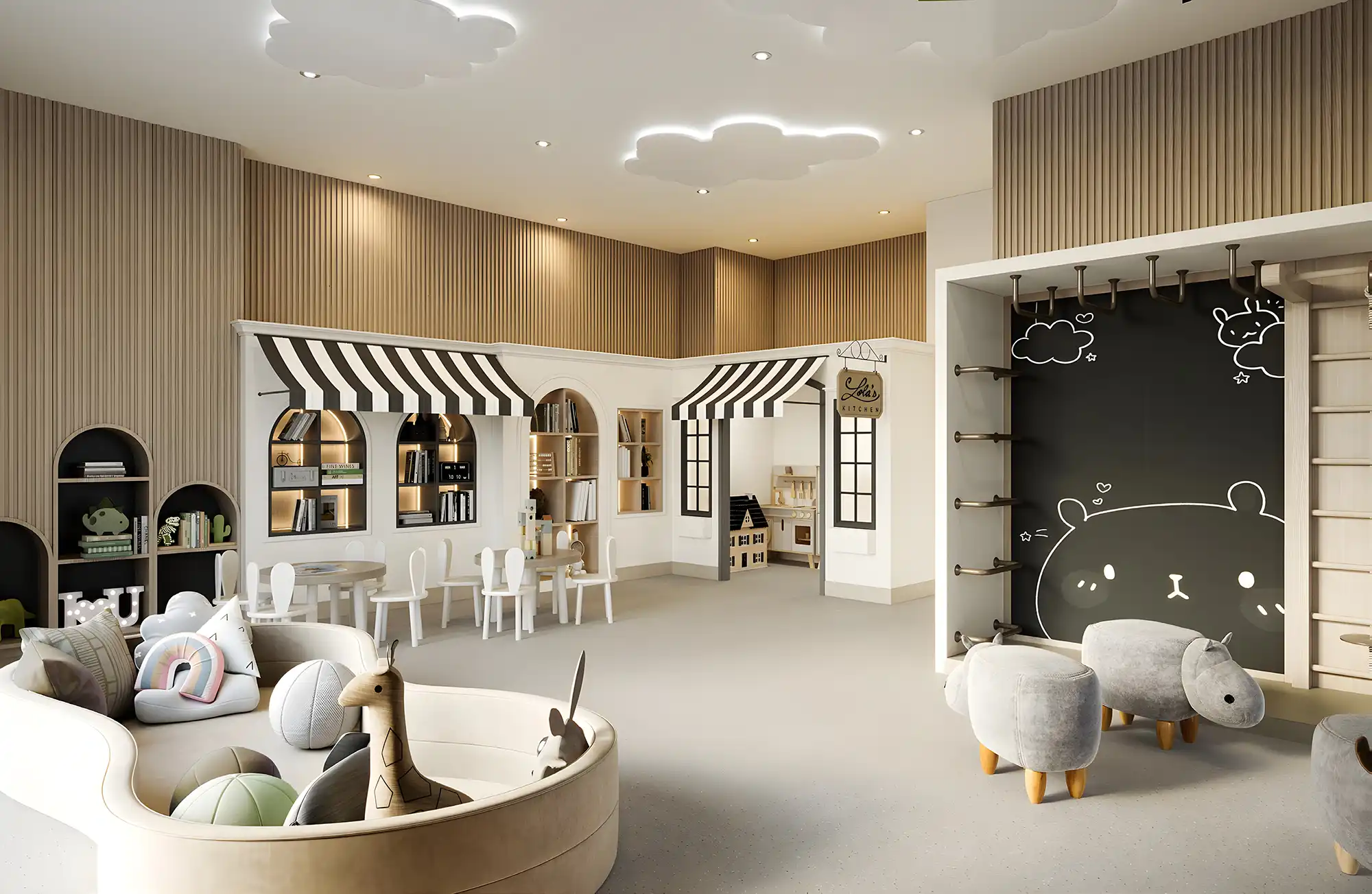 Facilitățile oferite sunt la nivel premium. Podiumul complexului include o piscină infinity amenajată peisagistic, cu șezlonguri parțial scufundate în apă, cabane și priveliști către clubul de golf cu 18 găuri. Zona dedicată copiilor este amenajată ca o mini-stradă cu cafenea, perete de desenat și perne moi. Alte dotări includ un centru de fitness, spațiu pentru yoga, zonă de co-working, cinema în aer liber, lounge-uri și alei pietonale. Complexul oferă și parcare securizată pentru rezidenți.