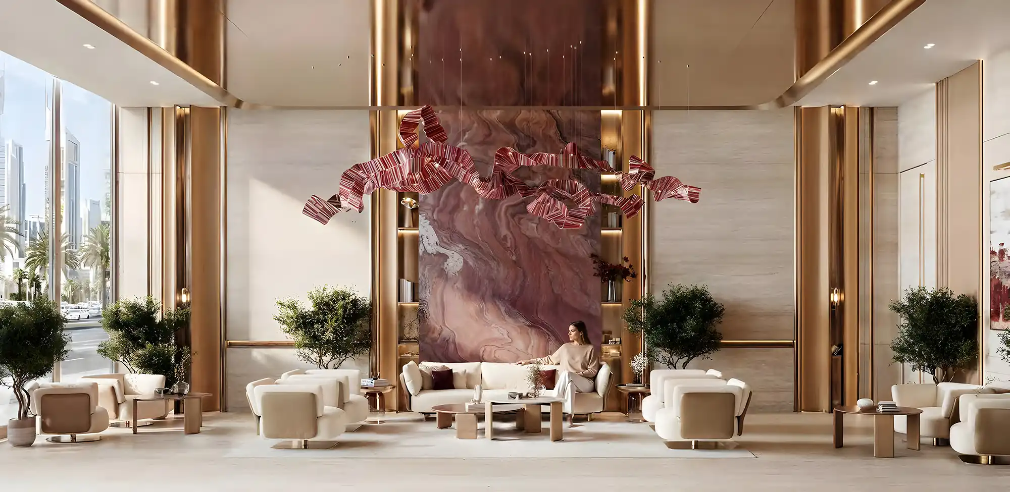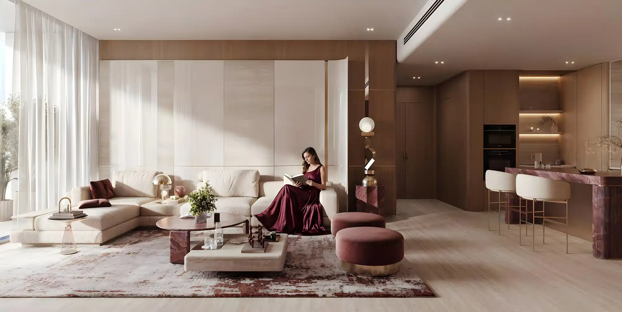 Designul interior al proprietăților la Binghatti Etherea utilizează tonuri neutre și calde. Pardoselile vor fi realizate din plăci de mari dimensiuni cu aspect de piatră naturală, iar pereții vor avea finisaje simple, dar de calitate, cu posibilitatea utilizării unor panouri decorative cu aspect de lemn sau travertin. Dulapurile încorporate pe întreaga înălțime a pereților ajută la utilizarea eficientă a spațiului. Un element important al conceptului este integrarea bucătăriei și a livingului într-un spațiu unic. Bucătăriile sunt prevăzute cu insulă sau peninsulă, blaturi din piatră, fronturi elegante și electrocasnice încorporate. Iluminatul este atent planificat pentru a face zona de lucru confortabilă și funcțională.