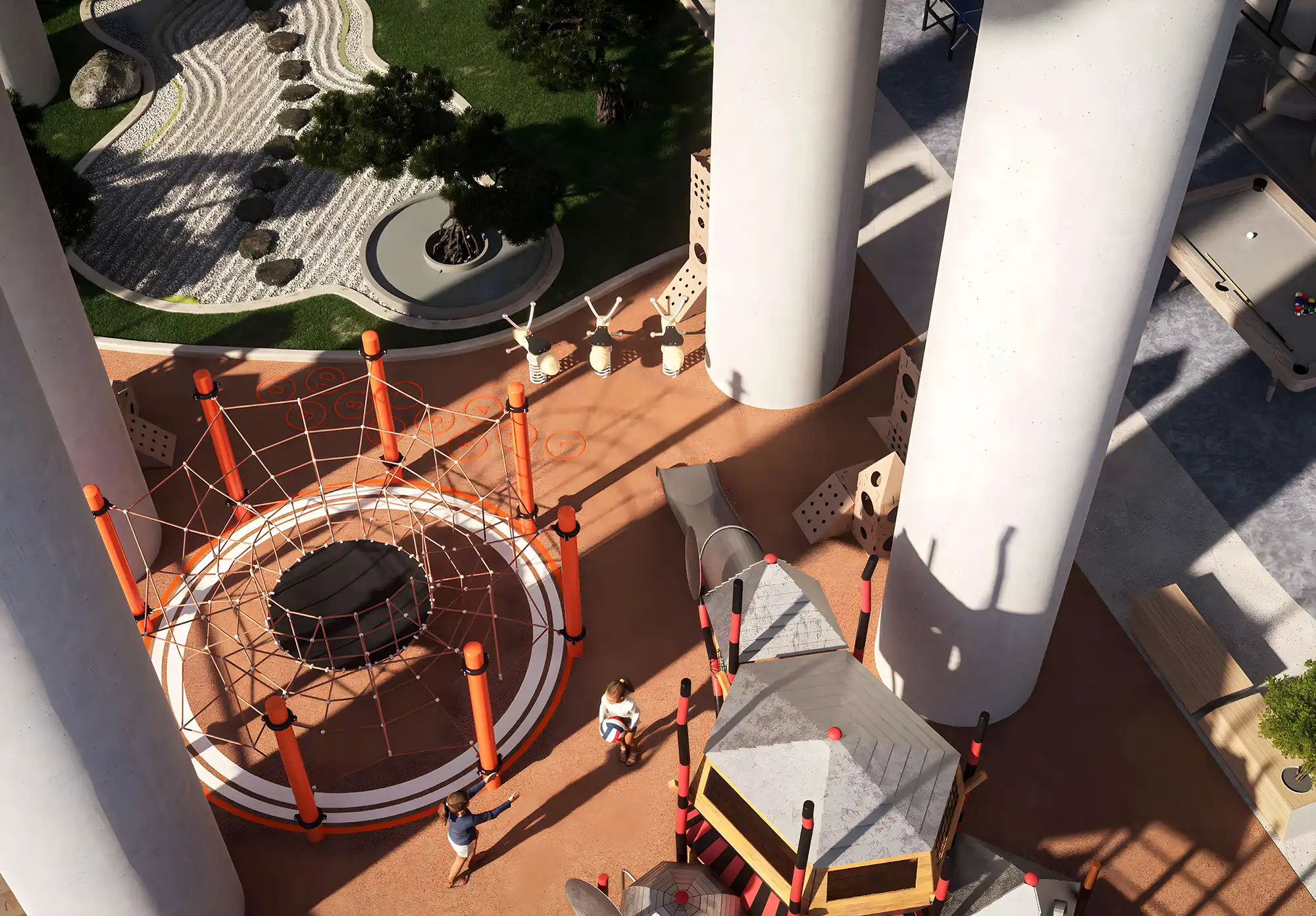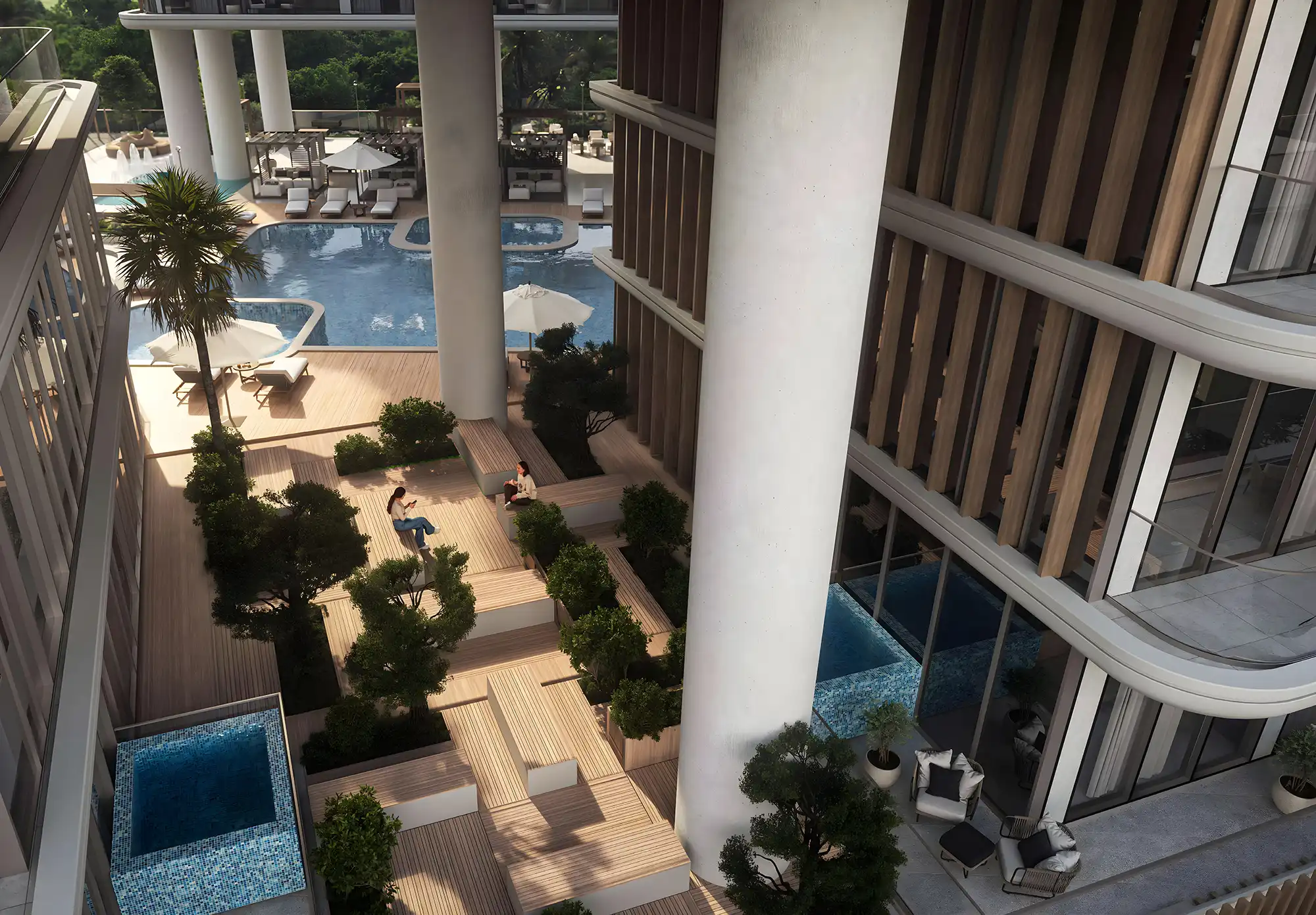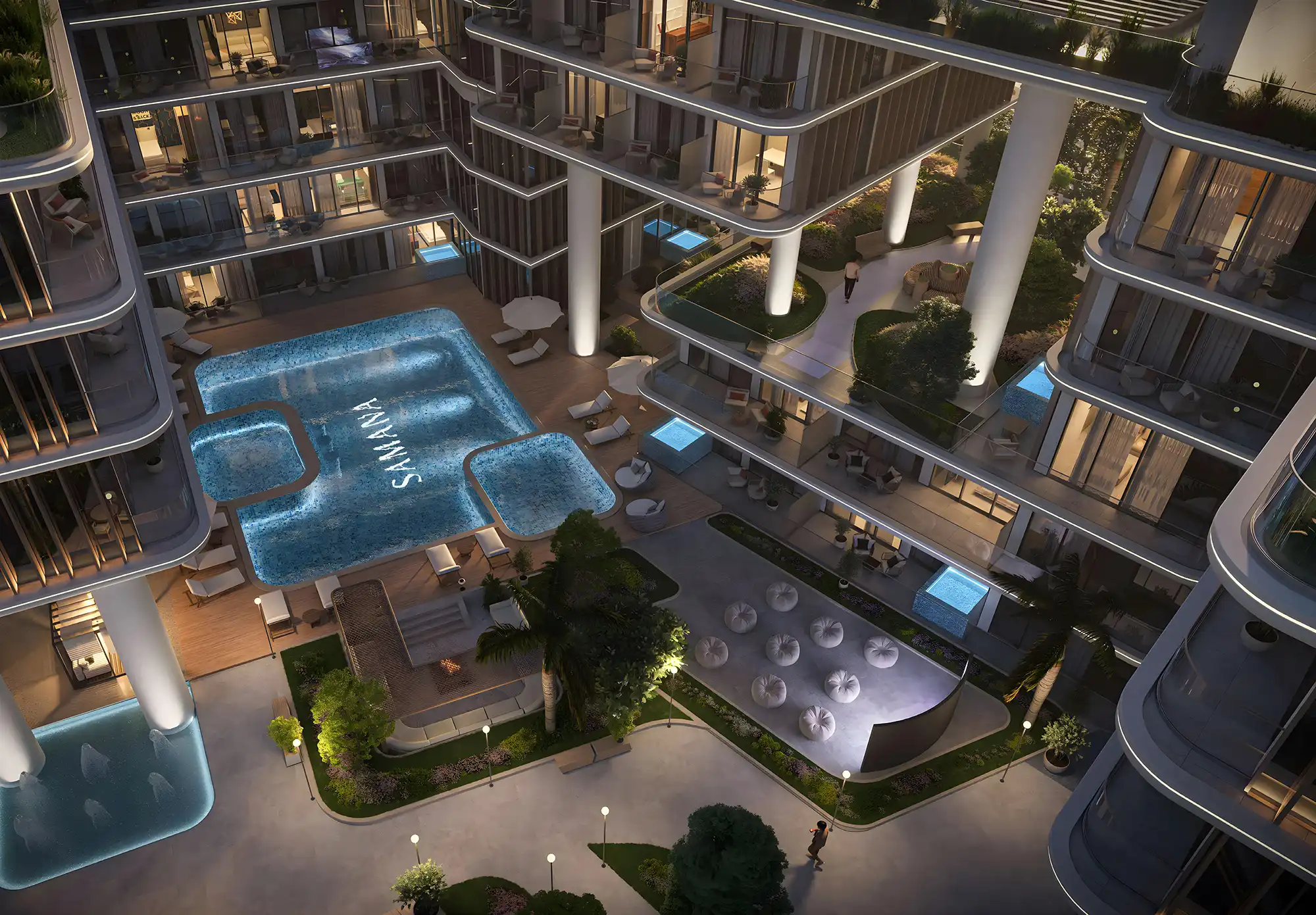 Suprafețele apartamentelor încep de la 37 m² pentru studiouri, 60 m² pentru apartamente cu 1 dormitor și 93 m² pentru apartamente cu 2 dormitoare. Unele unități includ piscine private pe terase, un element de semnătură Samana care atrage chiriași și crește atractivitatea investițională.