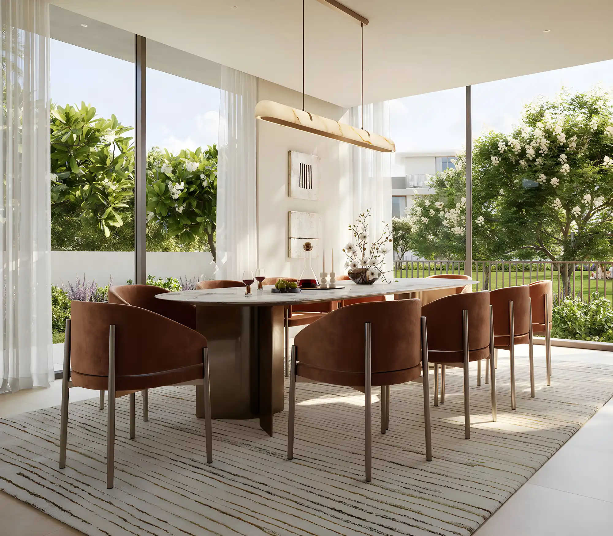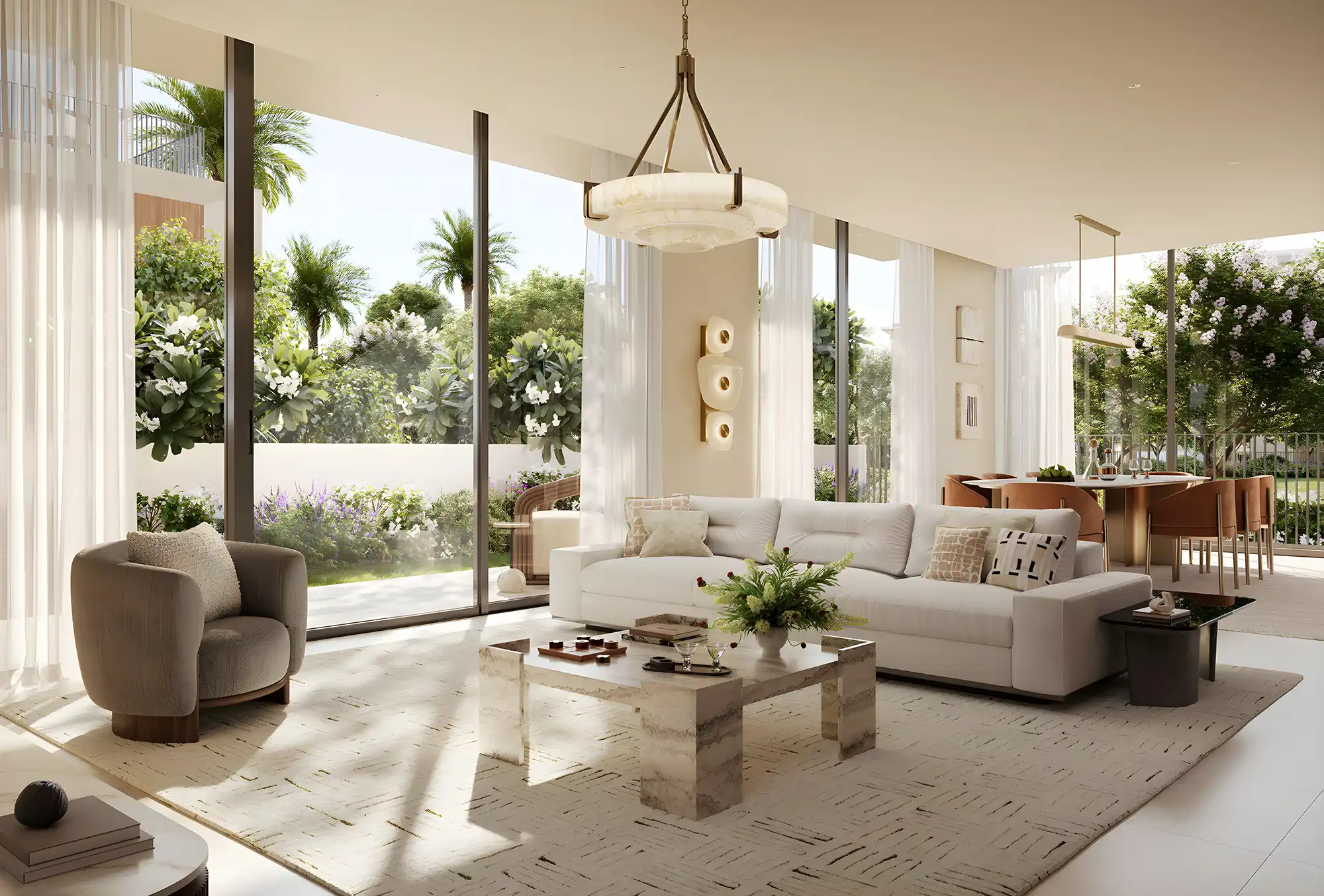 Proprietățile disponibile spre vânzare în cadrul Emaar Selvara Grand Polo Club & Resort sunt prezentate într-un format unic și extrem de căutat — vile cu 4 dormitoare, cu suprafețe cuprinse între 338 m² și 356 m². Locuințele sunt organizate în două grupuri distincte — Selvara și Selvara 2. Designul este minimalist, cu accent pe forme sculpturale, linii fluide și texturi naturale. Toate vilele sunt dispuse pe trei niveluri și includ curți private, grădini verzi, livinguri luminoase și zone de familie. O caracteristică aparte a interiorului este tactilitatea finisajelor, realizate din piatră și lemn, în nuanțe bej și tonuri pământii. Spațiile sunt proiectate pentru a crea o tranziție naturală între interior și exterior, oferind o experiență de locuire deschisă, luminoasă și confortabilă.