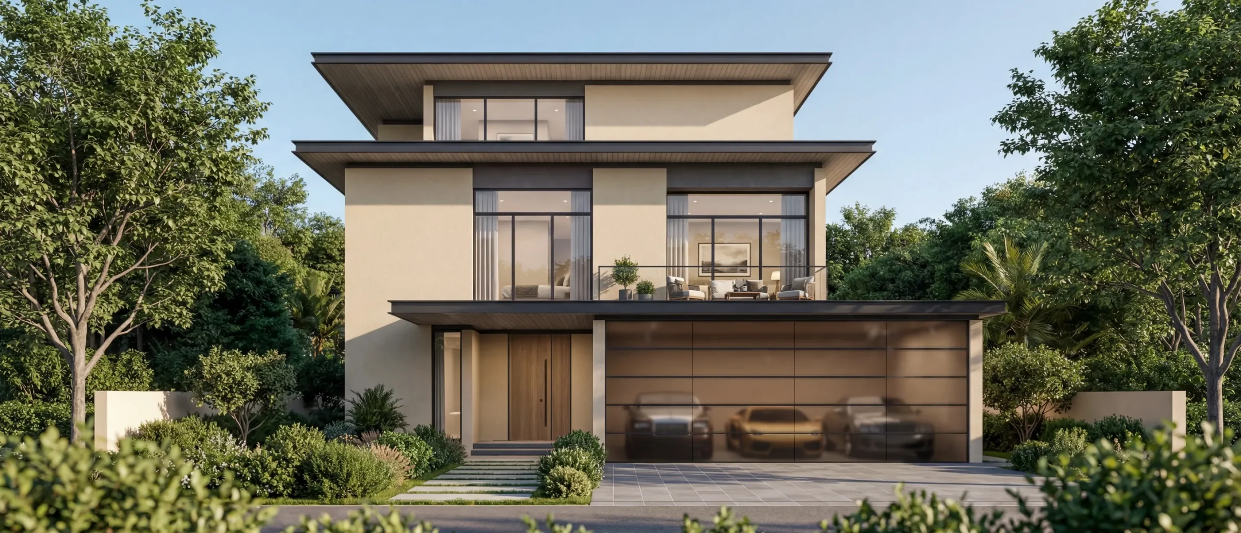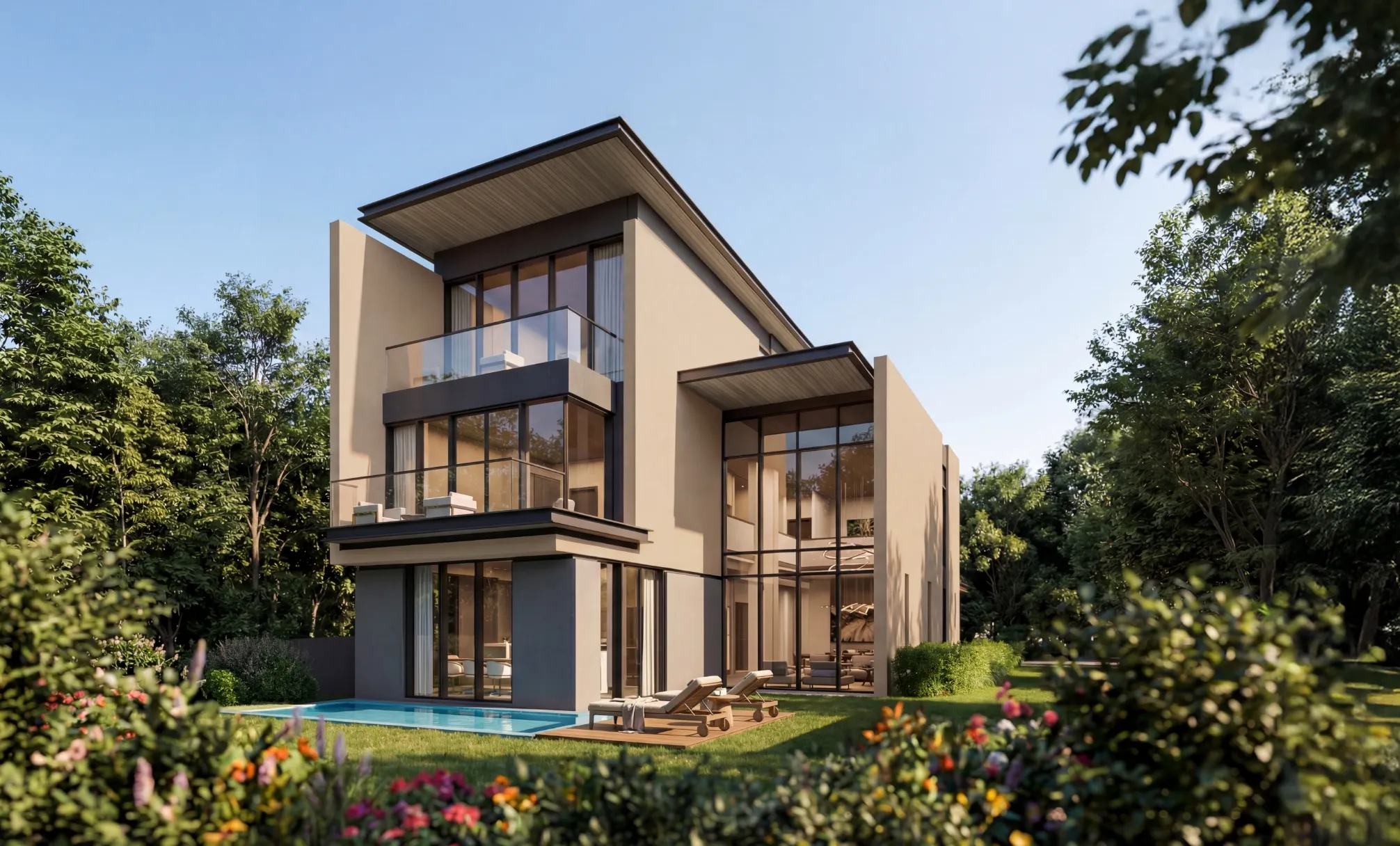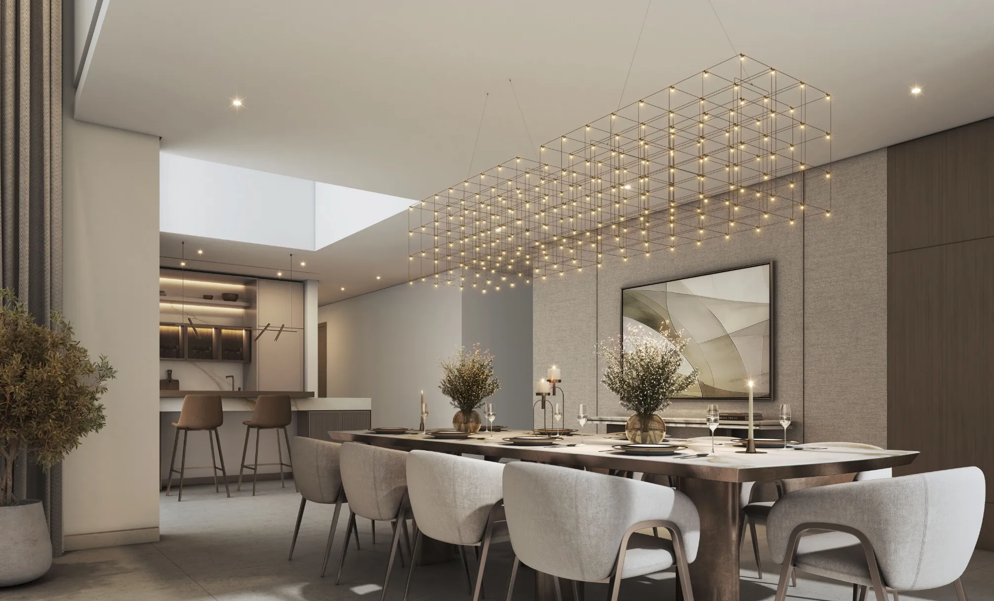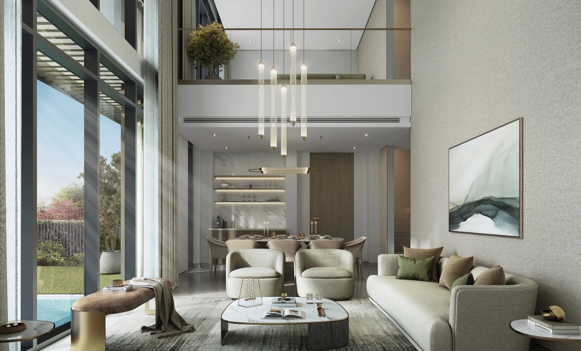 The Orchard include vile spațioase cu 4, 5 și 6 dormitoare, proiectate pentru viața de familie la standarde înalte. Suprafețele pornesc de la aproximativ 484 m² și ajung până la peste 603 m², oferind livinguri ample, bucătării moderne, zone de dining elegante, camere luminoase și grădini private. Unele unități beneficiază de lift privat, piscină proprie și locuri de parcare acoperite. Designul pune accent pe lumină naturală, funcționalitate și conexiunea dintre spațiile interioare și exterior.